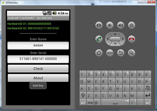 As our crackme is up and running in emulator, we now move onto