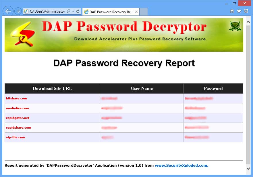 DAP Password Decryptor : Free Password Recovery Tool for Download Accelerator Plus