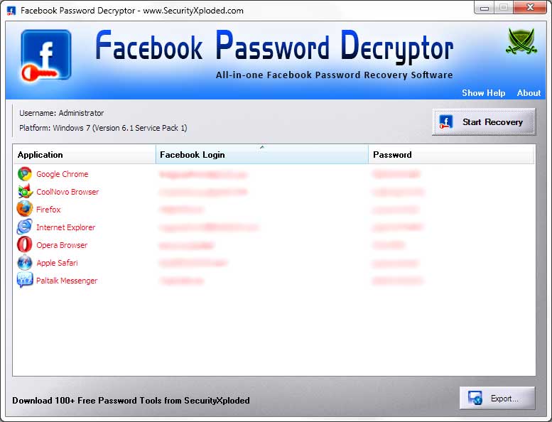 | Updated Facebook password recovery from major browsers. |