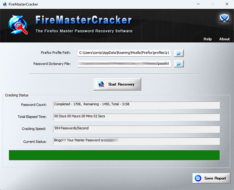 FireMasterCracker is the FREE software to recover your lost or forgotten Master Password of Firefox (all versions). It is the GUI version of FireMaster, first ever tool created to recover the Master Password of Firefox. |
