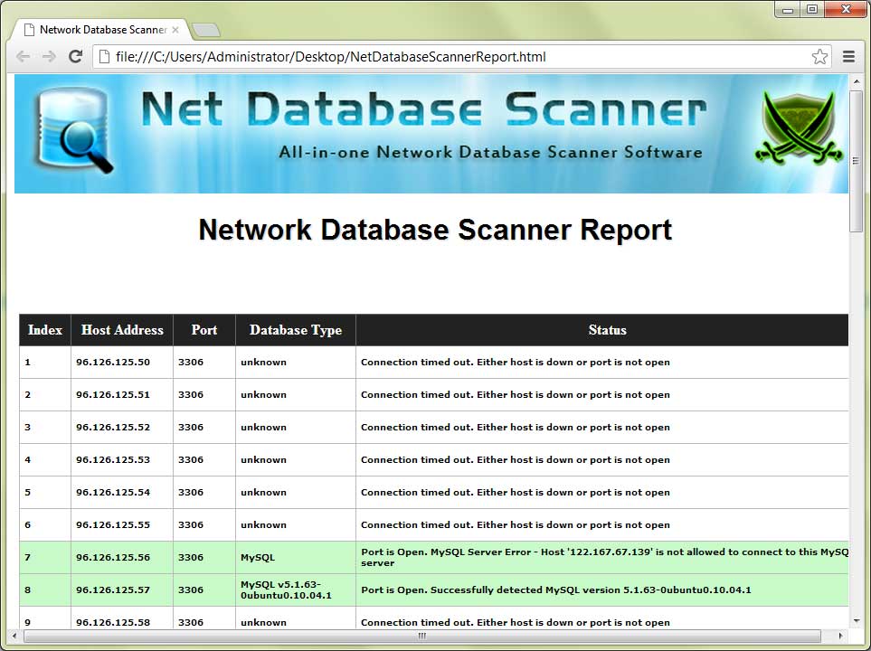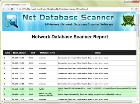 | Screenshot 2: HTML based Database scan report generated by NetDatabaseScanner |