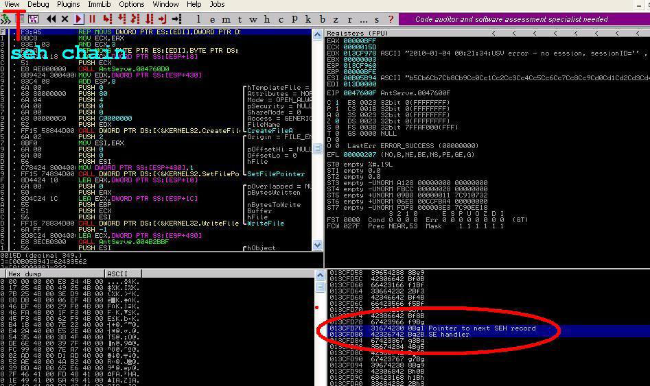 013CFD7C 31674230 0Bg1 Pointer to next SEH record 013CFD80