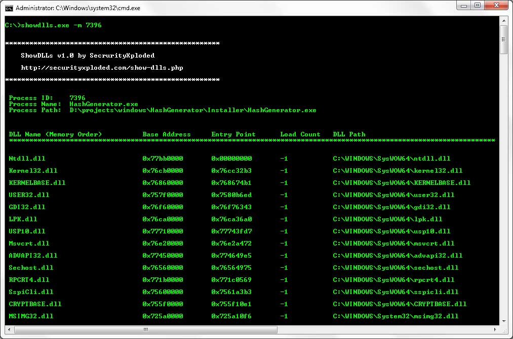 Show DLLs is the command-line tool to list DLLs from a Process in Initialization, Load and Memory Order.