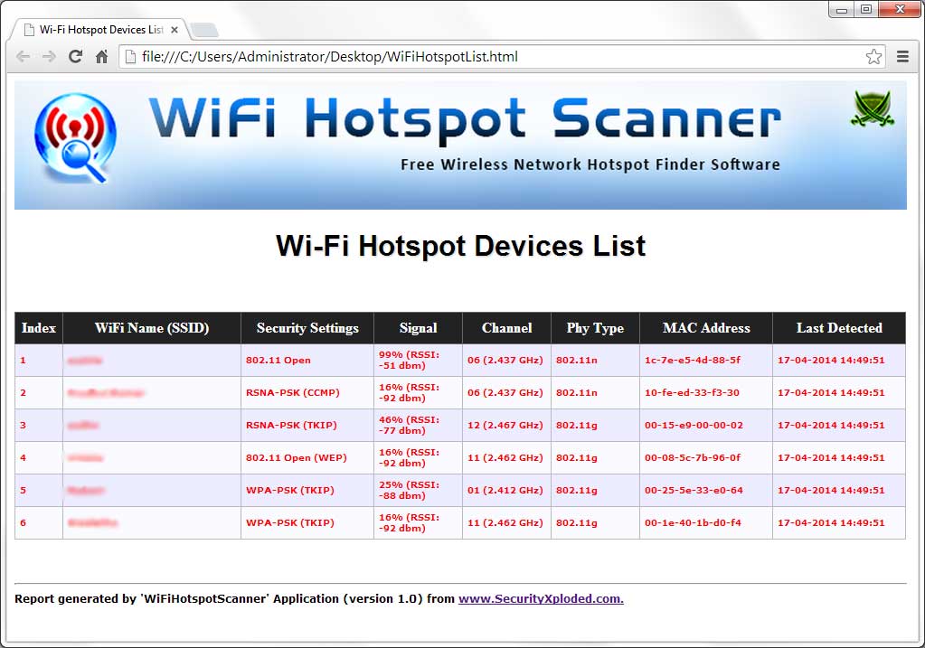 WiFi Hotspot Scanner - Free Wireless Network Hotspot Finder Software | www.SecurityXploded.com