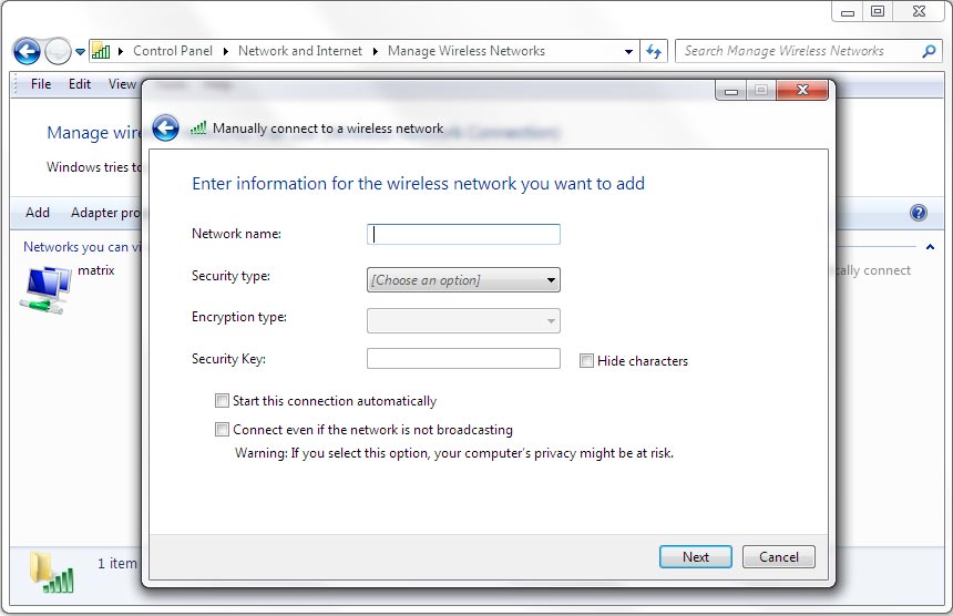 | Below is the screenshot showing the 'Add Wireless Network' dialog |