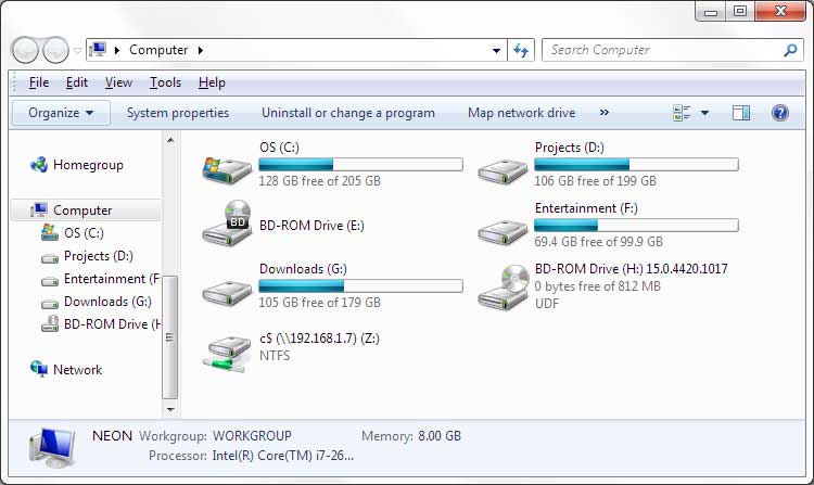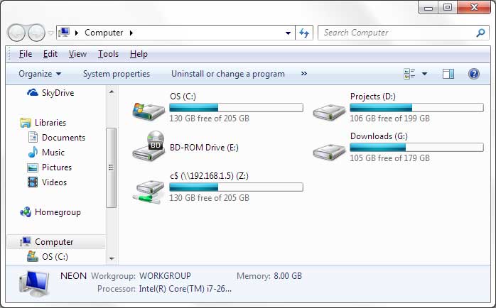 | Screenshot 2: 'My Computer' screen before Hiding Drives |