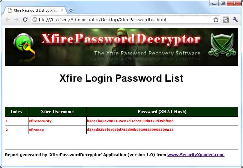 C:\Program Files\SecurityXploded\XfirePasswordDecryptor