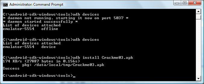 Android debug bridge(adb). Installing a