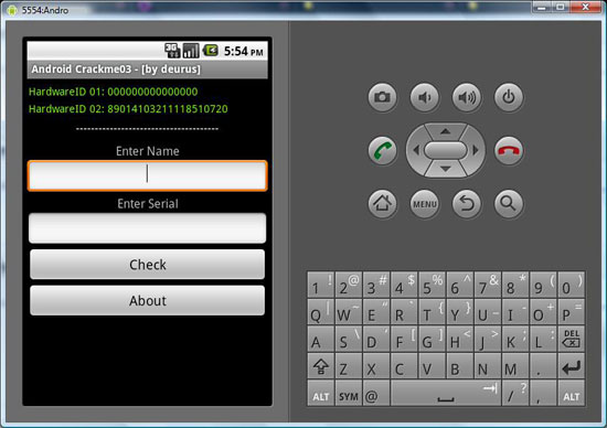 As our crackme is up and running in emulator, we now move onto