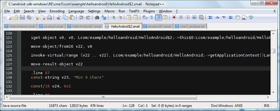located at '\com\example\helloandroid'. Open all the .smali files into