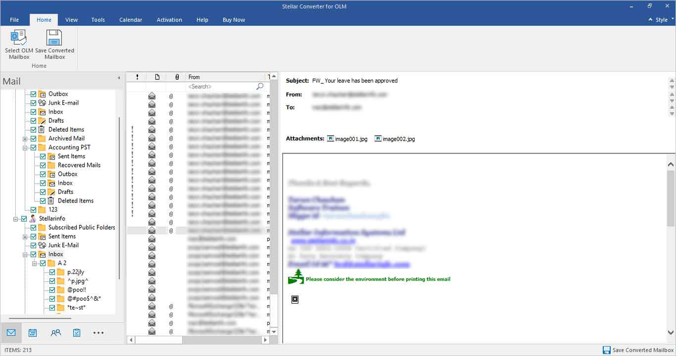 Stellar Converter for OLM is conceptualized by Stellar Information Technology to provide users with an impeccable software solution that can convert OLM to PST with ease and in real time. The software can convert Outlook data items, such as emails, messages, journals, notes, and a lot more from Outlook for Mac mailbox to Windows Outlook compatible PST.