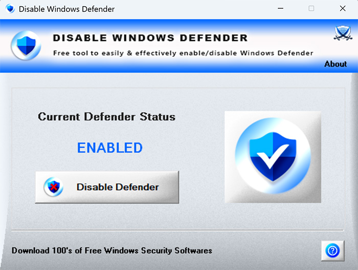 Disable Windows Defender Tool : Free tool to easily & effectively enable/disable Windows Defender
