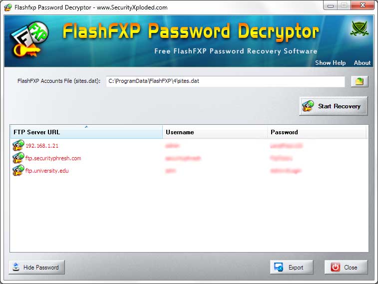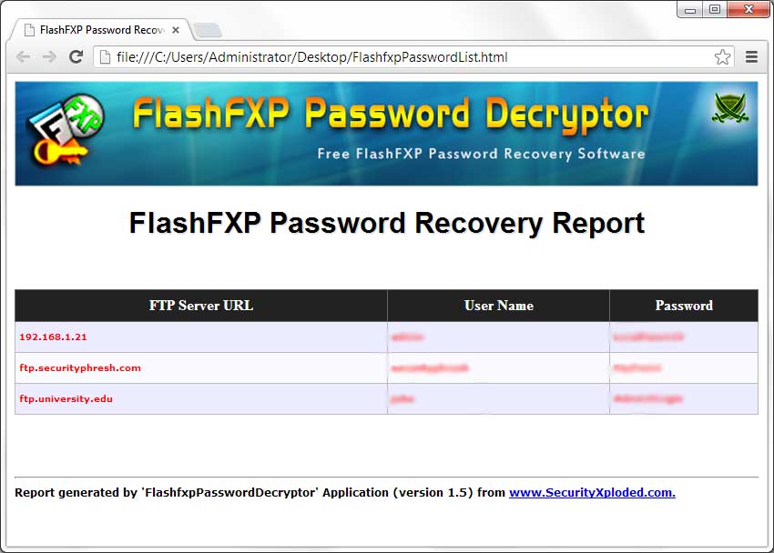 | Major 2019 release to recover login passwords from latest FlashFXP version. Also enhanced GUI and password report in HTML file |