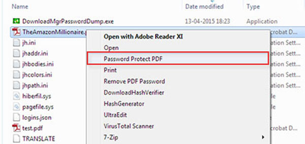 | Screenshot 3: Right click context menu to quickly select and password protect any PDF file with just a click. |