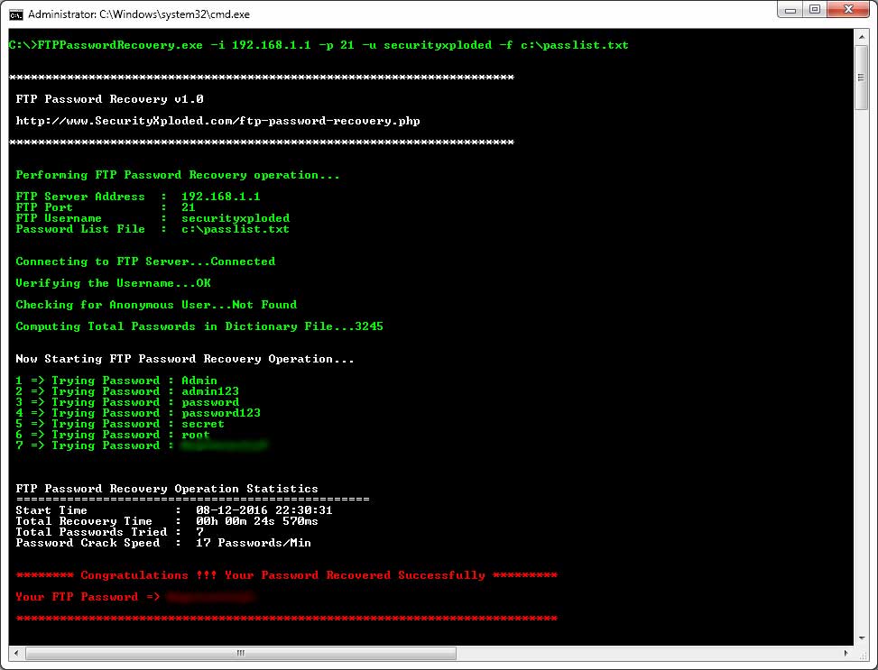 FTP Password Recovery is a free command-line tool to find your lost or forgotten FTP password for any FTP server.
