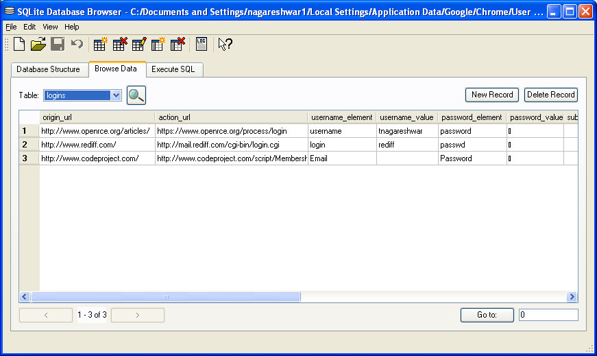 sign-on secrets are stored by Chrome. This table contains following