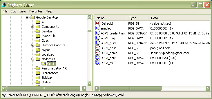 | The Google account name & encrypted password is stored in the registry