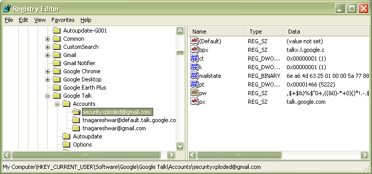 the registry under unique subkey. Google account passwords are stored