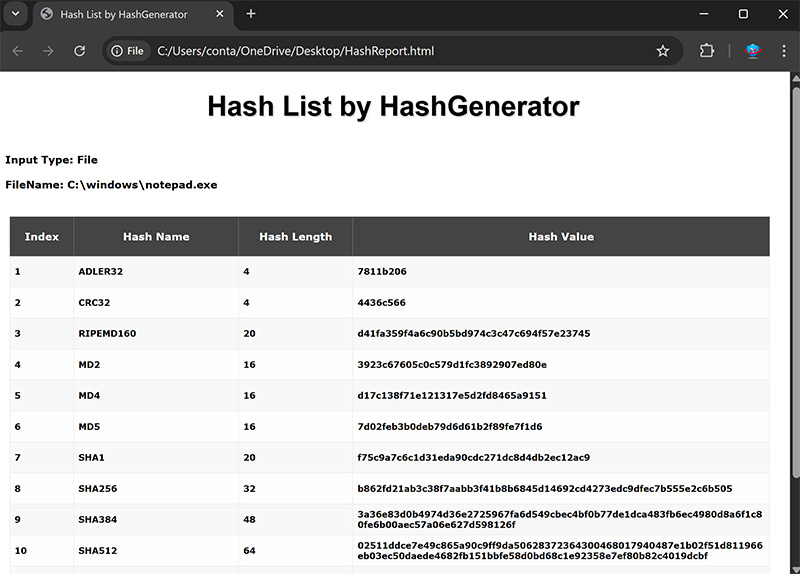 | Support for report generation in XML format along with HTML/Text format. Displays hash length. Few minor bug fixes. |