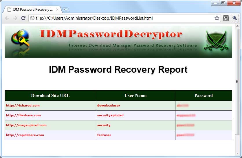| Support for IDM Password recovery on Windows 8, Improved HTML reports and UI interface. |