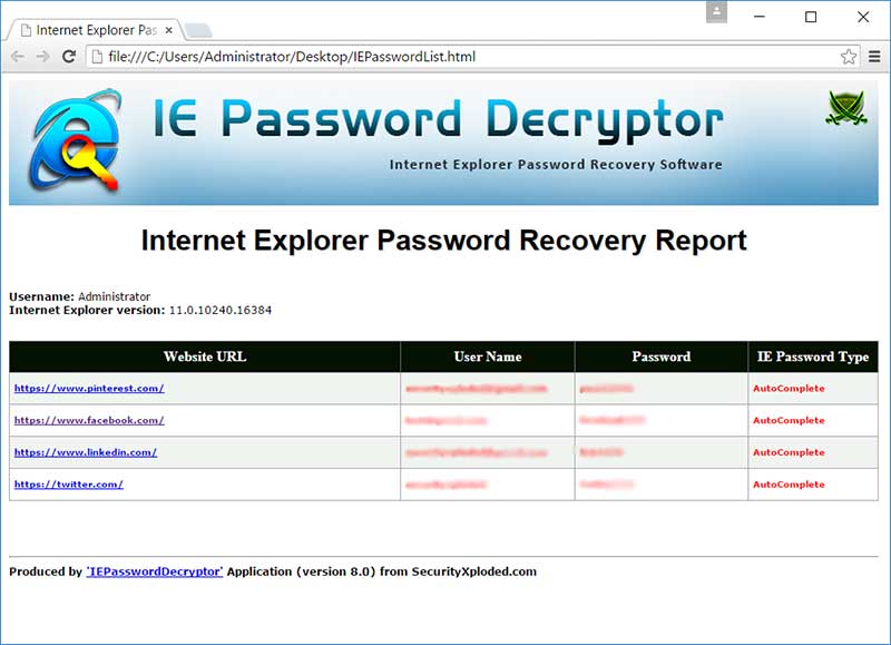 of sign-on passwords from all versions of Internet Explorer along with