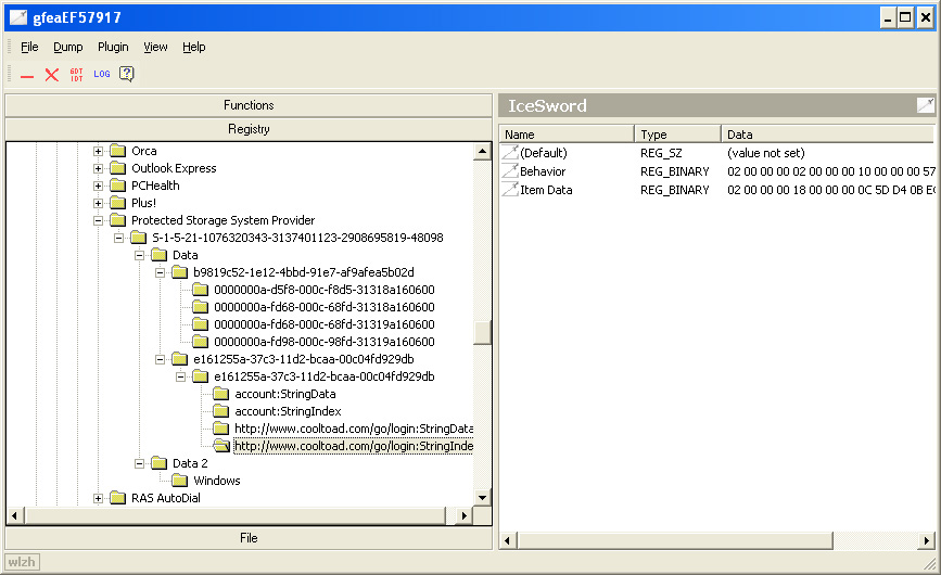 The actual contents of this registry location are encrypted ant not visible in Regedit tool. However you can use IceSword's registry editor to view the actual encrypted contents as shown in the below screenshot.
