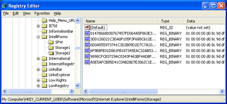 HKEY_CURRENT_USER\Software\Microsoft\Internet Explorer\IntelliForms\Storage2
