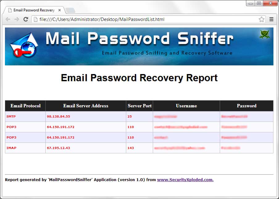 | Screenshot 2: Email Password Recovery Report in HTML format |