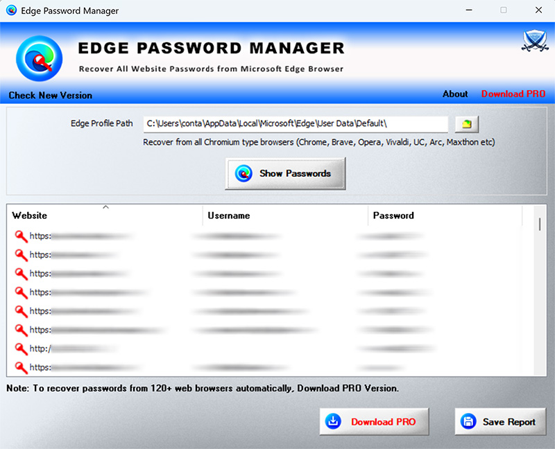 Not just edge browser, you can also use it to recover passwords of all Chromium type browsers like Chrome, Brave, Opera, Vivaldi, UC, Arc etc