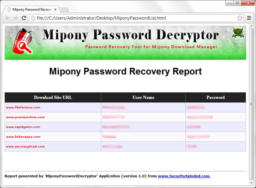 | Mega 2019 edition to recover download site passwords from latest Mipony Downloader |