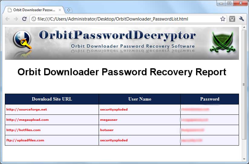 | Mega version with support to create Orbit password recovery report in CSV file format. Removed 'Show Password' button and added quick download link for more password tools. |