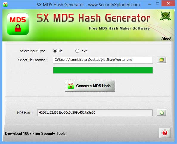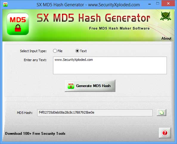 SX MD5 Hash Generator : Free MD5 Checksum Calculator Tool | www.SecurityXploded.com