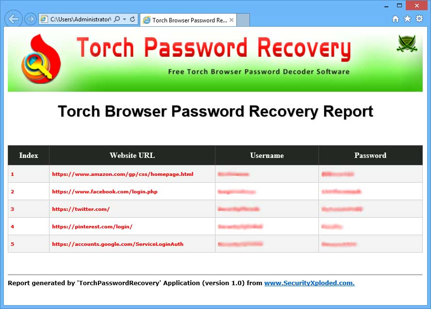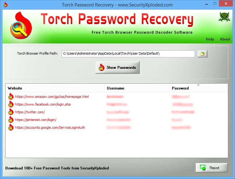 Torch Password Recovery is the FREE tool to instantly recover your lost or forgotten website passwords from Torch browser.