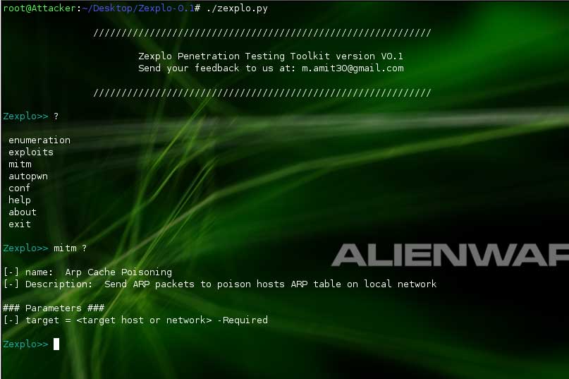 This first version of Zexplo has 6 enumeration modules for various network scanning operations such as zping, zarpcache, ztcpscan, znmapport etc and 1 exploit (filecopa). In addition to this it also has some exciting modules for man in the middle (MITM) attack and autopwn. You will also see tools such as Injector (inject modules into running process)and Encoder (with triple layer of XOR).